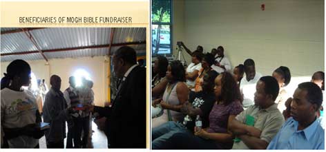 On the left, Bishop Michuki on return to Kenya bought and distributed the bibles. On the right are the wonderful families and friends who came to support our bible drive cause.
