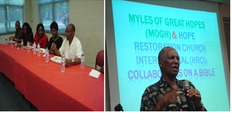 Emacurate performs during the MoGH and HRCI bible fundraiser in Raleigh July 16th 2011. On right is Isaac welcoming Apostle Eunice Mukuria of Richmond – Virginia.